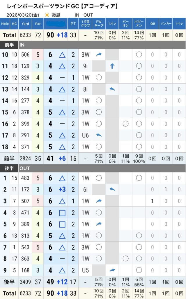 内容としては悪くなかったものの、後半は30〜60ヤードの判断ミスで流れを崩しました。